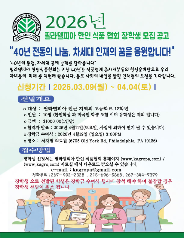 2026년도 필라델피아 한인 식품 협회 장학생 모집 공고